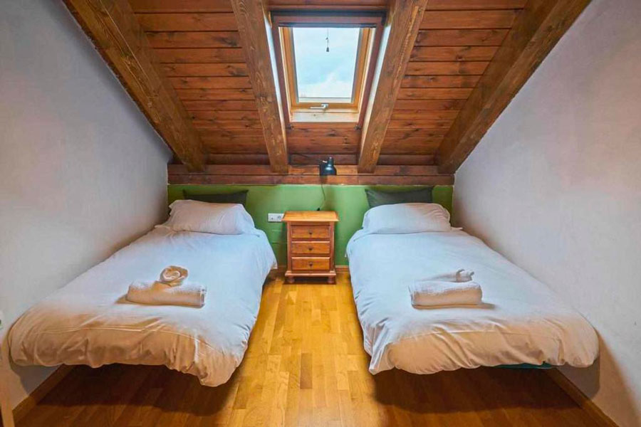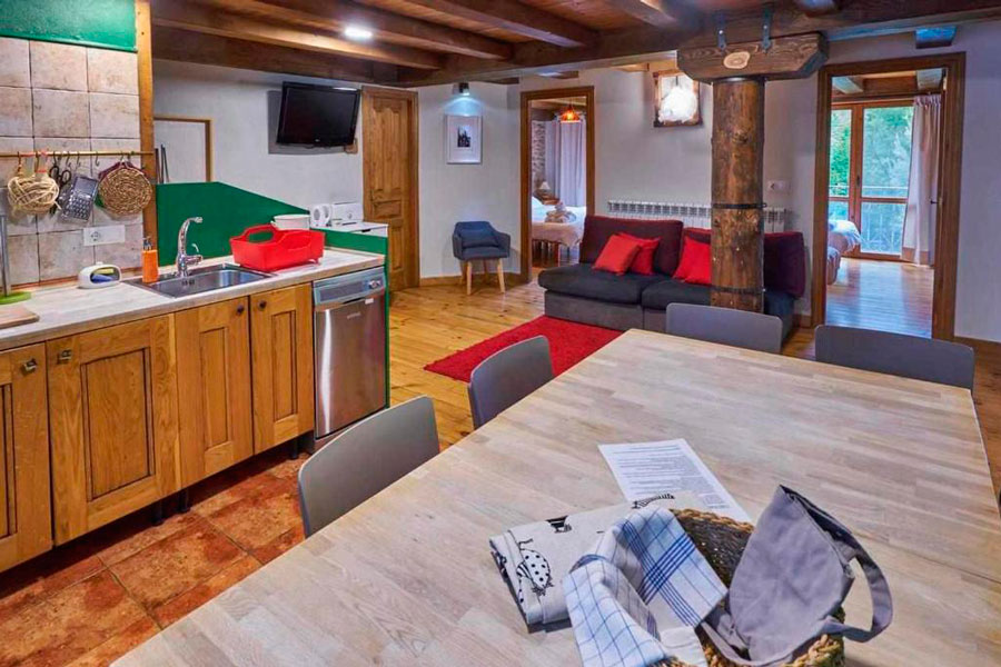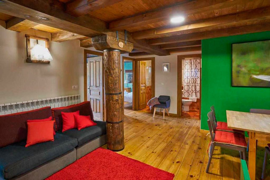 Casa Pirineos ofrece dos apartamentos rurales independientes y una habitación doble adicional que permiten adaptar la capacidad desde 2 hasta 18 plazas.