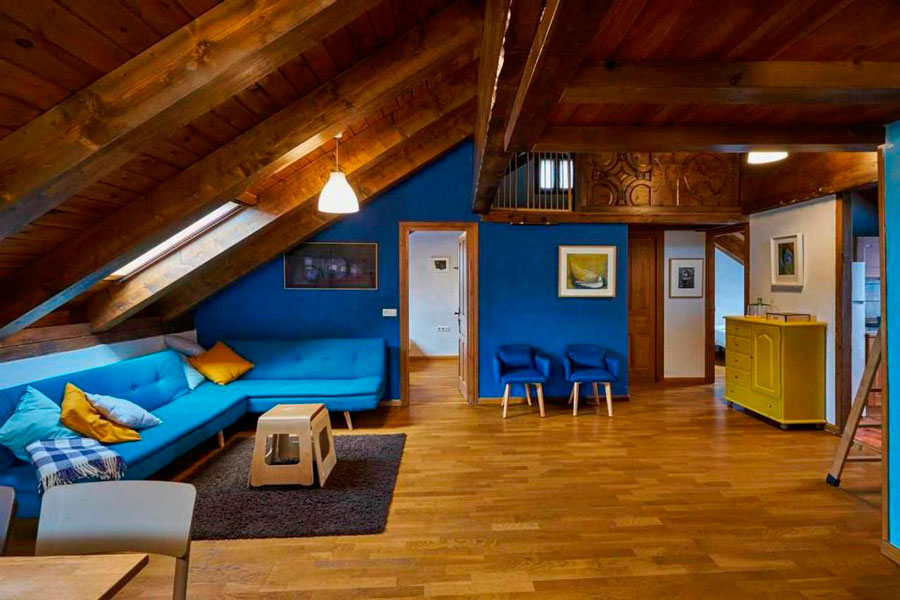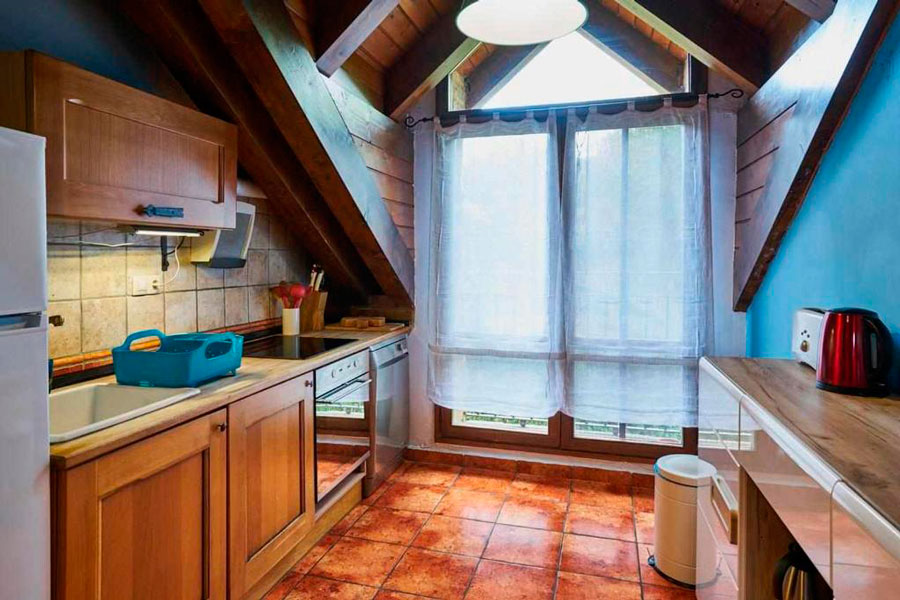 El interior combina espacios diáfanos, rincones acogedores, altillos y balcones con vistas a la Peña Oroel, creando un ambiente perfecto tanto para el descanso como para encuentros, cursos o retiros. La calefacción de biomasa, los aislamientos ecológicos y la energía renovable garantizan un confort eficiente y responsable, reforzando el compromiso de la casa con un turismo rural sostenible.