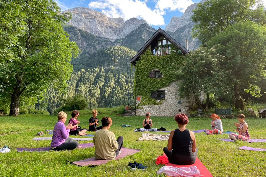 Breathe deeply, relax, and let the energy of the Pyrenees flow through you. Experience an exclusive yoga and wellness retreat surrounded by forests, waterfalls, and stunning views of the Monte Perdido Massif (National Park of Ordesa and Monte Perdido).