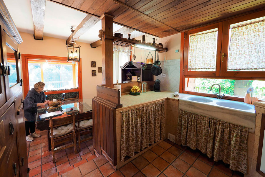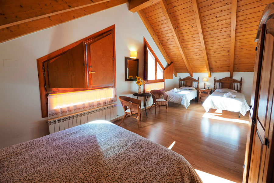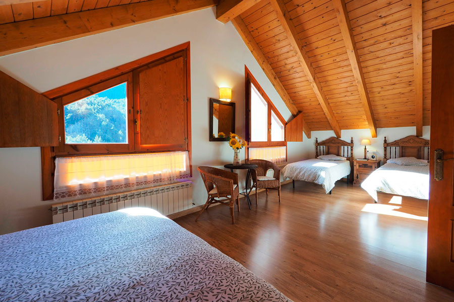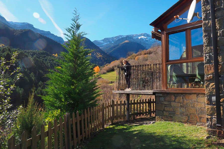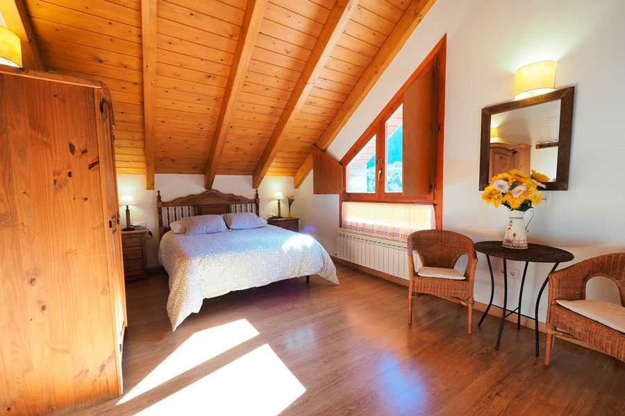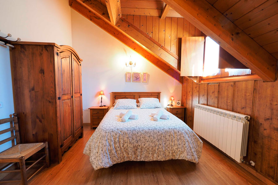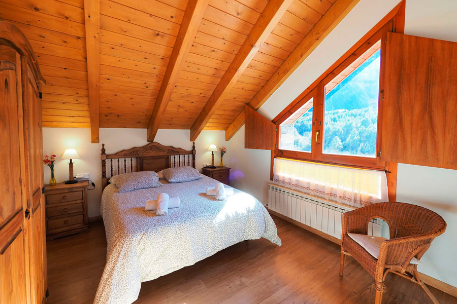 Elle se compose de deux étages et peut accueillir jusqu’à 10 personnes. Au rez-de-chaussée se trouvent une chambre double, une salle de bain avec douche, un salon-salle à manger avec cheminée et une cuisine ouverte sur la salle à manger, d’où l’on peut accéder à la terrasse pour écouter et profiter du son de la rivière Cinca et de la vue imprenable sur les vallées de Pineta et de Bielsa.