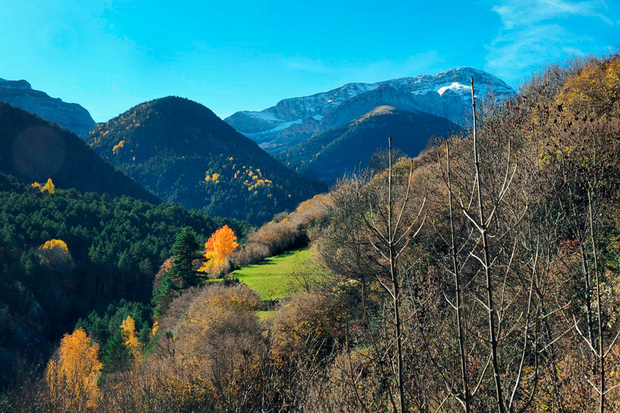 Situado a 1053 metros de altitud, a la entrada del Valle de Pineta ( uno de los valles pertenecientes al Parque Nacional de Ordesa y Monte Perdido), es un lugar privilegiado donde poder realizar numerosas rutas, bordeando el río Cinca entre hayedos, praderas florecidas y preciosos pinares de pino negro.