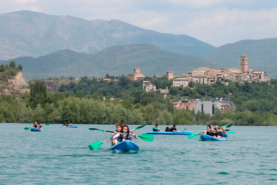 Durante el recorrido, disfrutarás de las aguas tranquilas del embalse, rodeadas de montañas, bosques y acantilados que ofrecen una de las panorámicas más espectaculares de Huesca. Una actividad ideal para quienes buscan relax, naturaleza y aventura acuática.