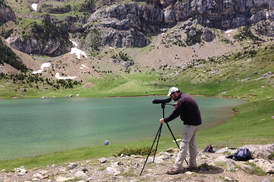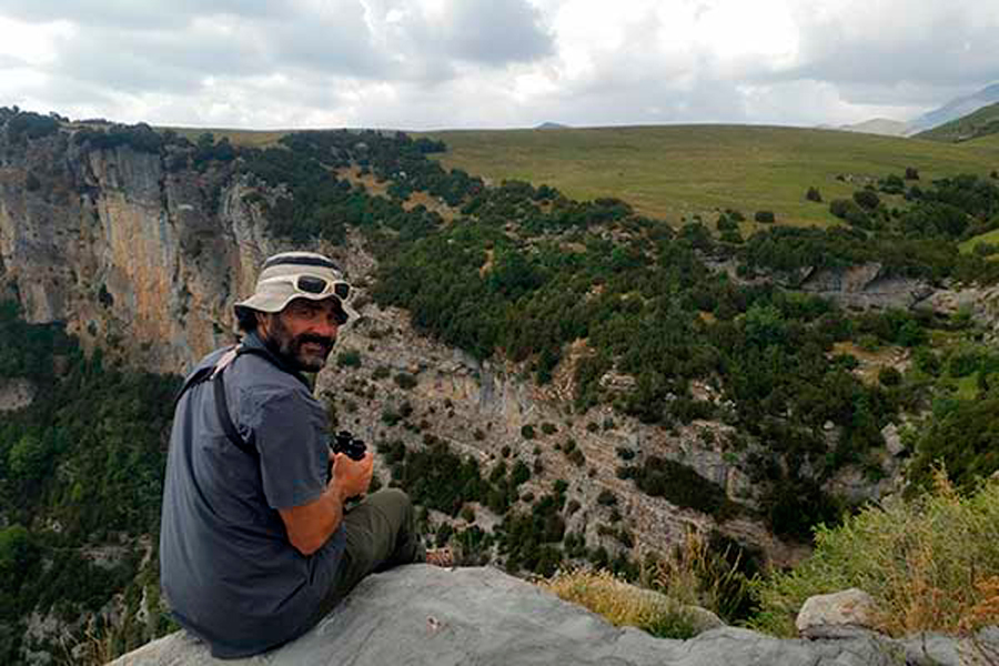 Con más de 20 años de experiencia, ha trabajado en todos los valles del Pirineo Aragonés y colabora con la Fundación para la Conservación del Quebrantahuesos.
