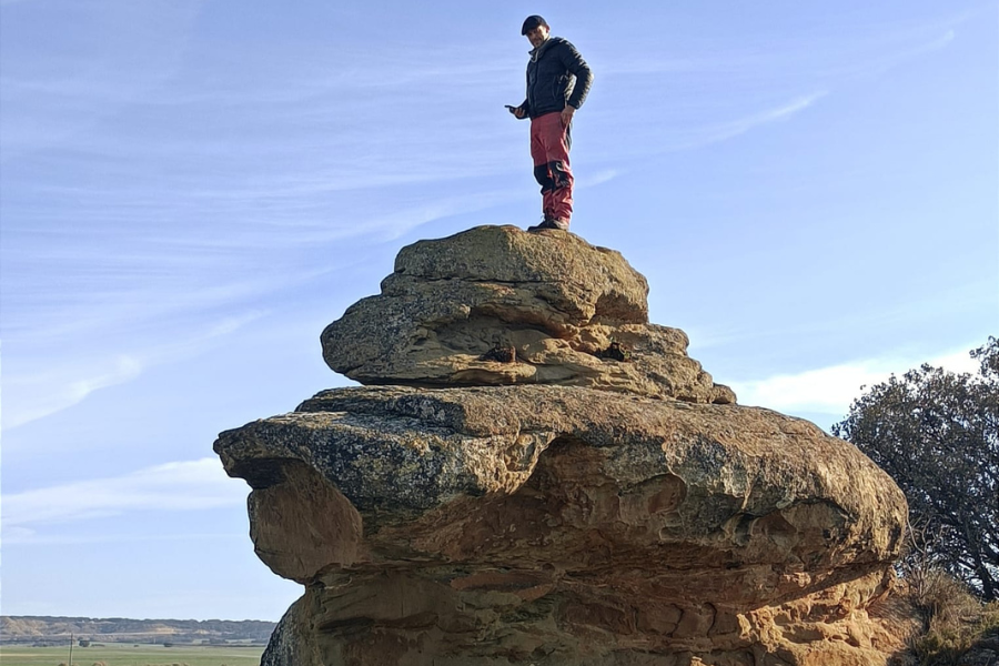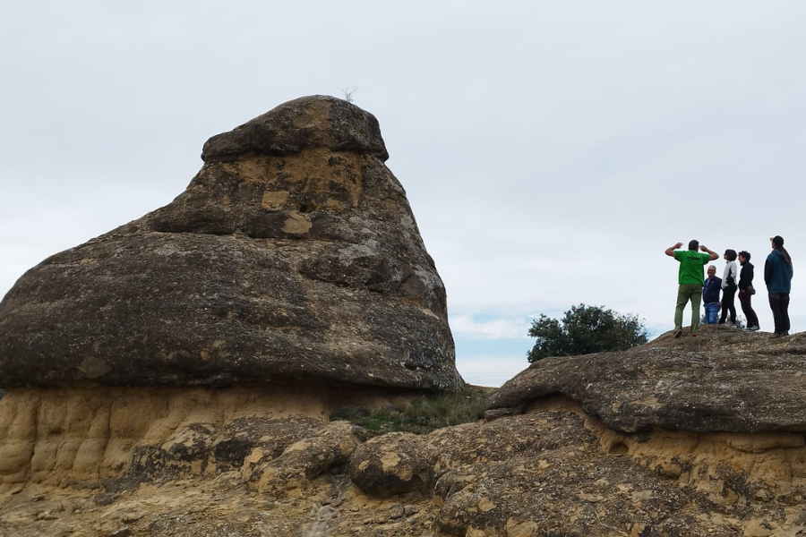 La estepa monegrina tiene uno de sus principales símbolos en los «torrollones«, montículos creados por la erosión de los siglos, del viento y de las lluvias en unos sedimentos que hace ahora millones de años fueron el lecho del mar.